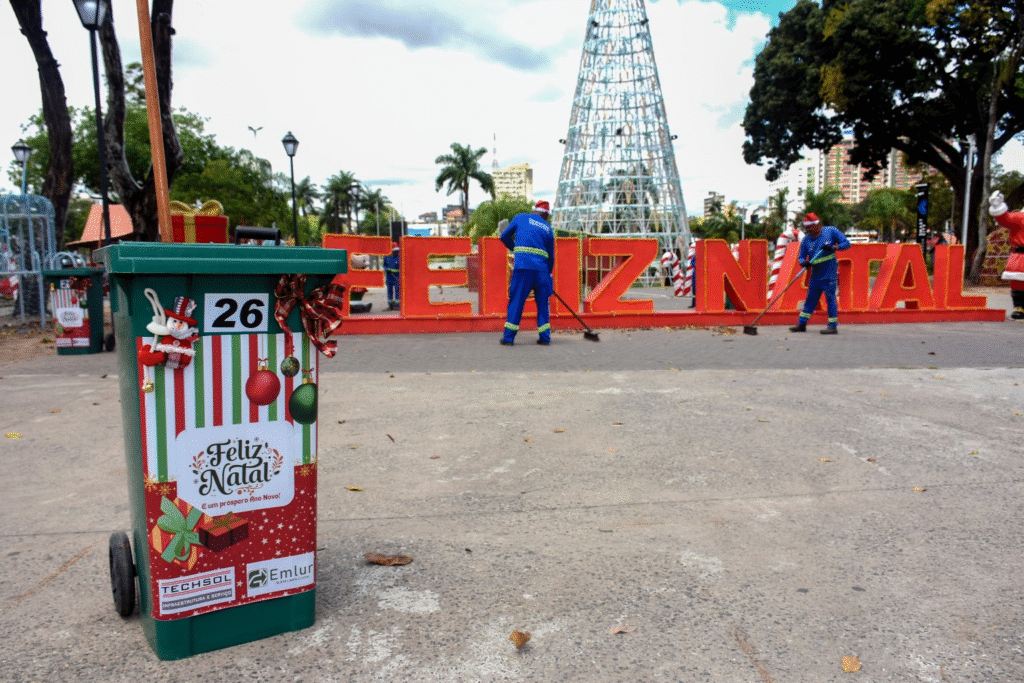 Agentes da Emlur trabalham em clima natalino e reforçam operação de limpeza nesta quarta-feira