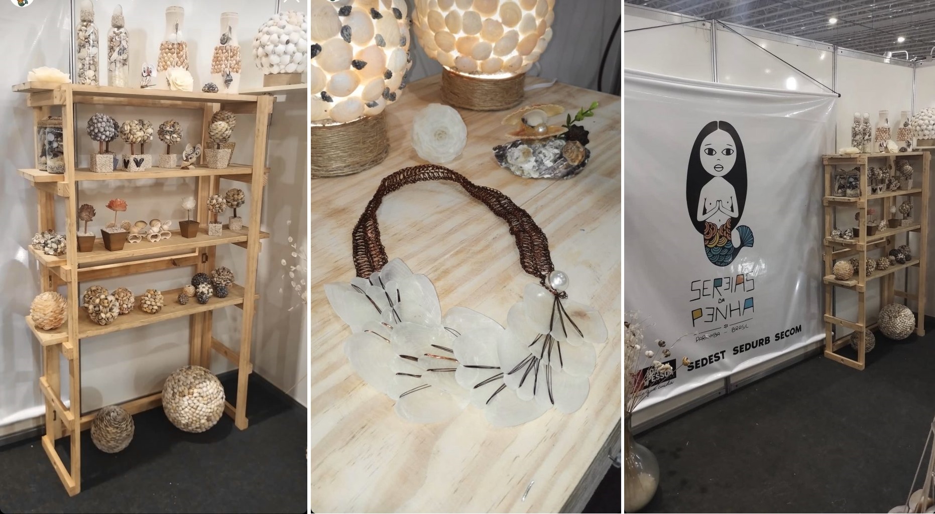 As artesãs pessoenses que integram o projeto Sereias da Penha estão com estande na Multifeira Brasil Mostra Brasil (BMB). Atualmente, sete artesãs da capital transformam escamas de peixe e conchas em obras de arte, como luminárias, quadros, brincos, colares, peças de roupa, anéis e uma variedade de produtos. Trabalho que já foi reconhecido no maior evento de moda do Brasil, a São Paulo Fashion Week. As Sereias da Penha contam com o apoio da Secretaria de Desenvolvimento Urbano (Sedurb) e da Secretaria de Desenvolvimento Econômico e Trabalho (Sedest).