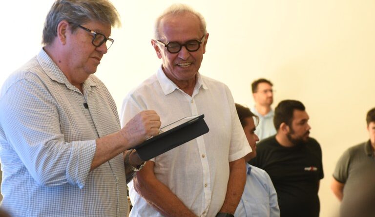João Azevêdo acompanha Cícero Lucena em assinatura da ordem de serviço para pavimentação asfáltica do acesso à Orla Sul de João Pessoa