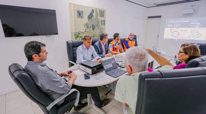 Uma reunião estratégica para o fortalecimento da gestão de riscos e a segurança da população de João Pessoa. Essa foi a pauta da reunião conduzida pelo prefeito em exercício, Leo Bezerra, na manhã desta terça-feira (02) no Centro Administrativo Municipal (CAM), em Água Fria. No encontro, que teve a participação da equipe da Unidade Executora do Programa João Pessoa Sustentável e da Coordenadoria Municipal de Proteção e Defesa Civil (Compdec-JP), foi apresentado o diagnóstico de riscos da cidade, que traz medidas já implementadas e novas ações para fortalecer a gestão nessas áreas.
