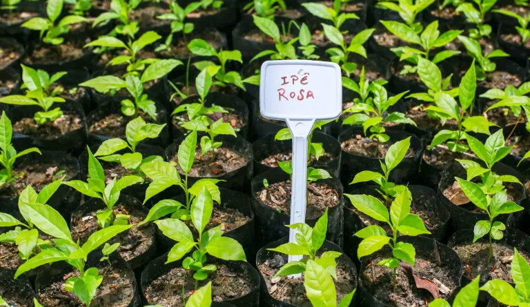 A produção das mudas começa com a coleta de sementes de árvores matrizes, que passam por um processo de secagem e maturação antes da germinação. Quando as plântulas atingem cerca de 10 centímetros, são transferidas para sacos individuais, onde continuam seu desenvolvimento até estarem prontas para o plantio definitivo.